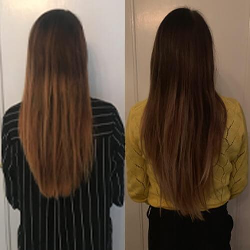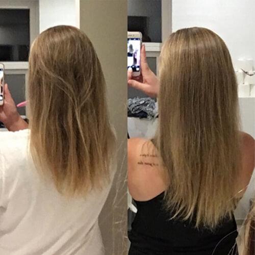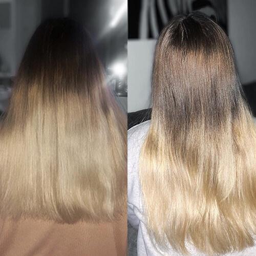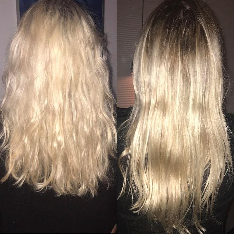 "My hair has always felt like hay (damaged, stiff and frizzy) and it had become to get more thin and wouldn't grow... Now my hair has become much longer, feels thicker, is as smooth as silk and feels just really healthy."