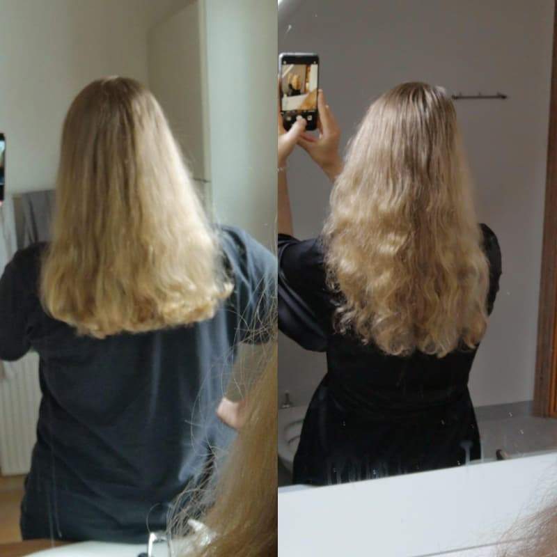 "I'm crazy about the product. My hair has become thicker and I can only recommend it. It works perfectly on my dyed hair."