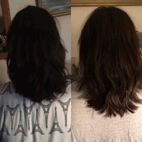 "It works fantastically! My hair has become a lot healthier, longer and fuller, as well as less frizzy."